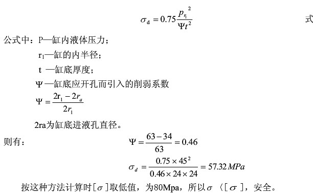 頂出缸的設(shè)計與主缸設(shè)計基本一致,在此從略。頂出缸簡圖。