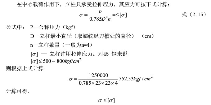 五、不考慮由于制造、安裝而后使用過程中受熱影響等產(chǎn)生的附加應(yīng)力。這些假使均屬一般性的,而且與實際設(shè)計的結(jié)構(gòu)基本相符。中心載荷作用下立柱強度計算